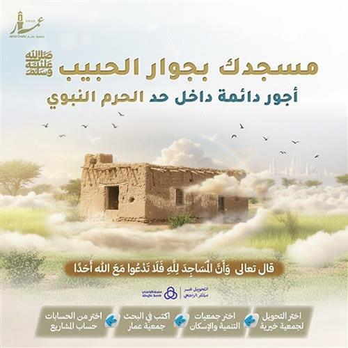 بـ 99 ريال فقط، تؤس مسجد لا ينقطع فيه الذكر، ولا تتوقف فيه الصلوات، ويستمر أجرك فيه إلى يوم القيامة بإذن الله.